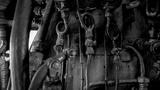Closeup image of old rusty metal pipes and valves at old steam locomotive