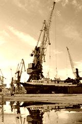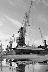 The large industrial crane for cargo containers in port