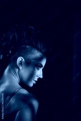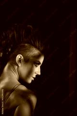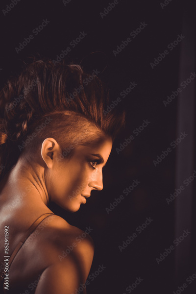 Fitness strength training workout - muscular bodybuilder sexy sport girl in underwear in a luxury interior