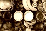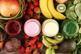 Multicolored smoothies and juices from vegetables, greens, fruits and berries, food background. Detox and dieting, clean eating, healthy lifestyle concept