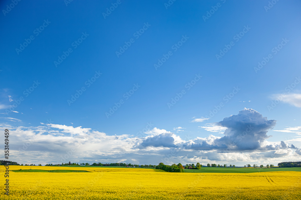 Rzepak - żółte kwiaty rzepaku - krajobraz rolniczy, Polska, Warmia i mazury