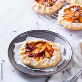 Homemade seasonal summer fruit galette, tart, pie with nectarines, peaches