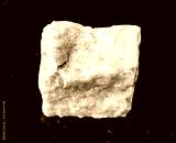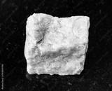 closeup of sample of natural mineral from geological collection - unpolished Feldspar rock on black granite background