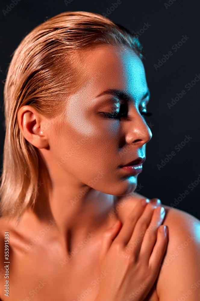 Woman in profile with perfect skin.