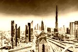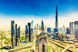 Amazing skyline cityscape with modern skyscrapers. Downtown of Dubai at sunny day, United Arab Emirates.
