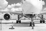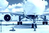 Plane close up at the airport with blue sky and clouds. Aviation or travel concept