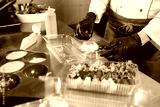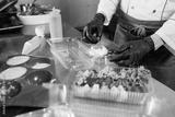 Food delivery in the restaurant. The chef prepares food in the restaurant and packs it in disposable dishes.