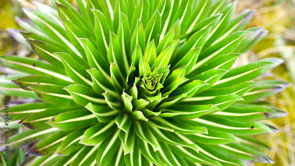 Giant lobelia deckenii, flora of Eastern African mountains, vegetation in Rwenzori mountains, green plant in Uganda, Tanzania