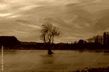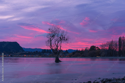 Sunset landscape with tree in the lake. Tree silhouette with colorful sunset sky