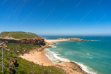 Beautiful ocean coastline landscape background with cliffs and sandy beach