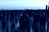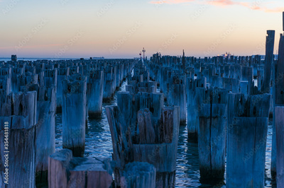 Old wooden poles of demolished historic Princes Pier in Melbourne