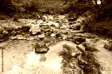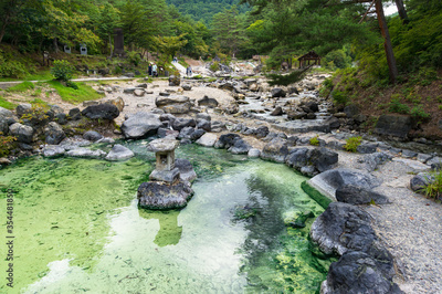 Outdoor hot spring pools, thermal pools in public park in Kusatsu, Japan