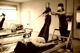 group of mature women doing excercise, Pilates and Yoga with social distancing and face mask