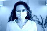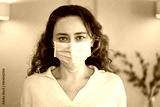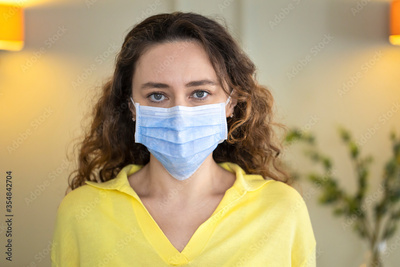 Young woman wearing a mask to protect herself against the coronavirus at home