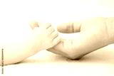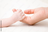 Baby hand clinging young mother fingers. Closeup. Lovely, emotional, sentimental moment. Family concept.