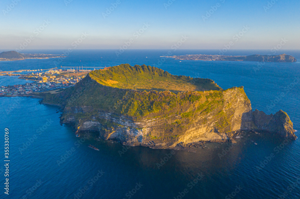Sunrise view of Seongsan Ilchulbong known as sunrise peak at Jeju Island, Republic of Korea