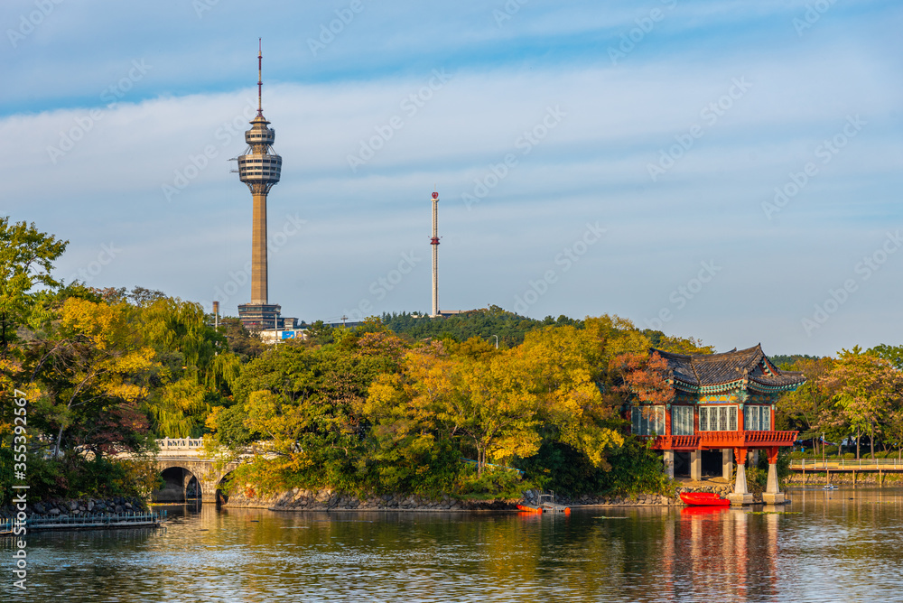 83 Tower behind an artificial lake in Daegu, Republic of Korea