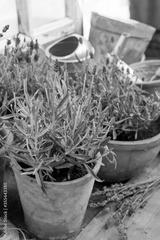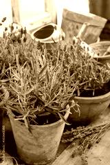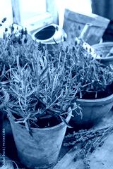 bush of fragrant lavender in a terracotta pot and dried lavender flowers, soft selective focus