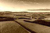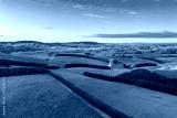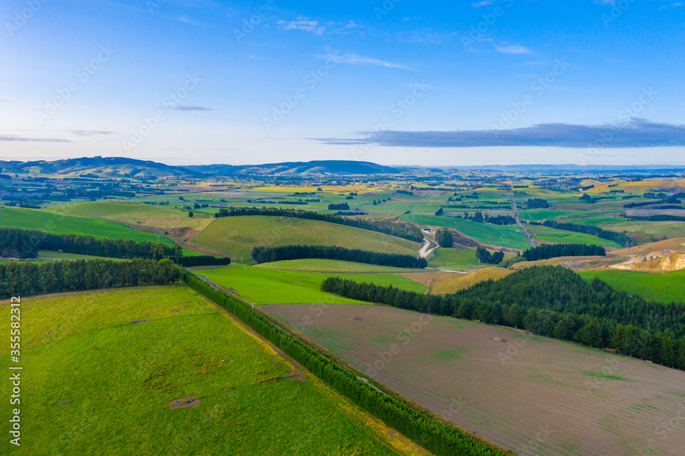 Green pastures in New Zealand during sunrise