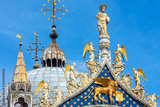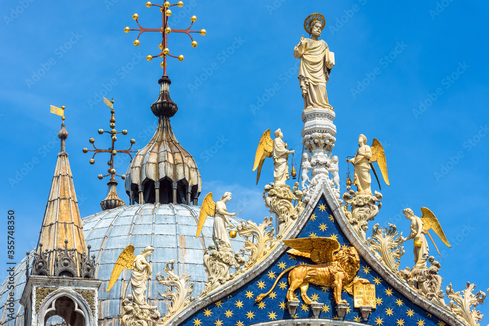 St Mark`s basilica or San Marco closeup, beautiful rooftop on sky background, Venice, Italy. Medieval cathedral is top landmark of Venice.