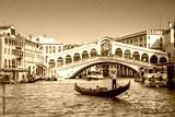 Gondola on Grand canal near Rialto bridgein Venice, Italy