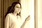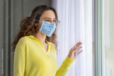 Young woman in isolation at home near window