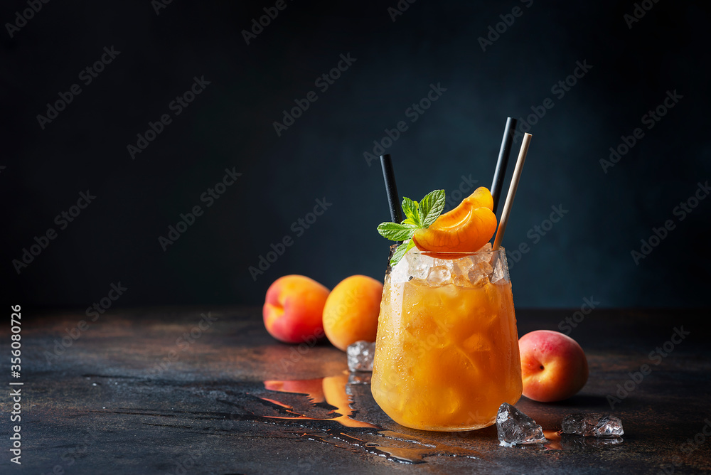 Fresh apricot cocktail with ice and mint