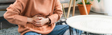 Young Asian woman hands holding the stomach and pain period cramps because having menstruation