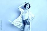 Portrait of her she nice attractive lovely fashionable charming pretty cheerful cheery girl air wind blowing looking back enjoying isolated over pink pastel color background