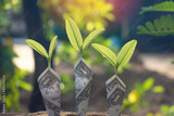 Close-up dollar with green plant growing on top for business.They are on sun light in the morning.saving,growth,investment,financial,photo business and economic concept.