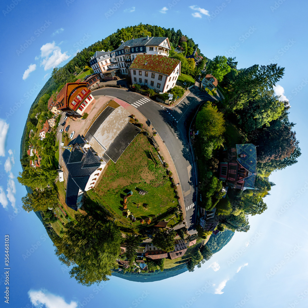AVillage Hohwald in Alsace little planet panoramic view from drone