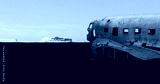 Abandoned old aircraft located on a volcanic black beach in Iceland