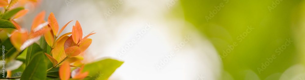 Beautiful attractive nature view of red and green leaf on blurred greenery background in garden with copy space using as background natural green plants landscape, ecology, fresh cover concept.