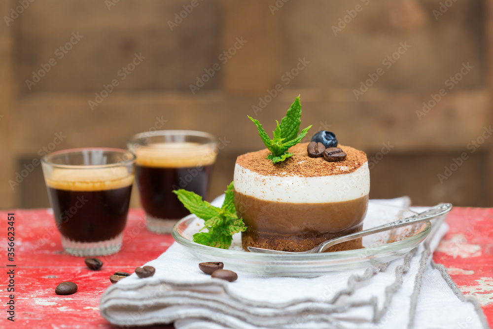 Homemade small mini coffee and chocolate cheesecake