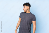 Arabian handsome man over isolated background doing surprise gesture while looking to the side