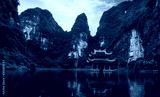 Reflection in the lake in mountains at Trang An Ninh Binh Vietnam, Boat view