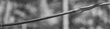 Brown twig with a green curled leaf against a blurred background, panoramic cut
