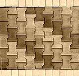 Tiles for outdoor floorings and pavements, arranged transversely. Colors are orange,white and gray.