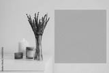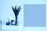 Minimal style home decor: dried lavender and aroma candles. Aromatherapy concept. Space for text, purple color