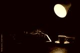 Máquina de escribir y taza