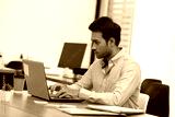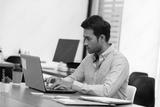 Portrait of Young business indian man working with laptop at office