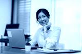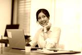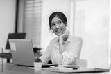 Happy Asian business woman looking laptop working and smile