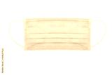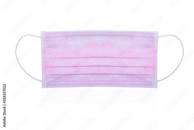 Pink surgical or medical face mask isolated on white background. Surgical face mask for coronavirus protection. Disposable earloop face mask for cover mouth to virus and air pollution protective.