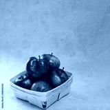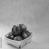 Red fresh organic apples in small wooden pottle with ugly fruit on top. On grey cement background with copy space. Buying imperfect product to reduce waste. Sustainable consumption. Square. Eco trend.