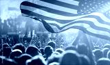 United States flag - crowd celebrating 4th of July Independence Day.