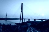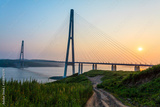 Cable-stayed bridge "Russky Bridge" to island Russkiy on the sunset. Vladivostok, Primorsky Krai, Russia