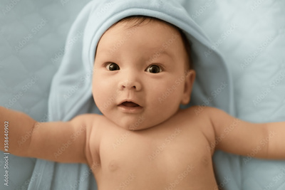 Cute baby portrait on blue blanket