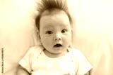 portrait of a baby girl with big blue eyes