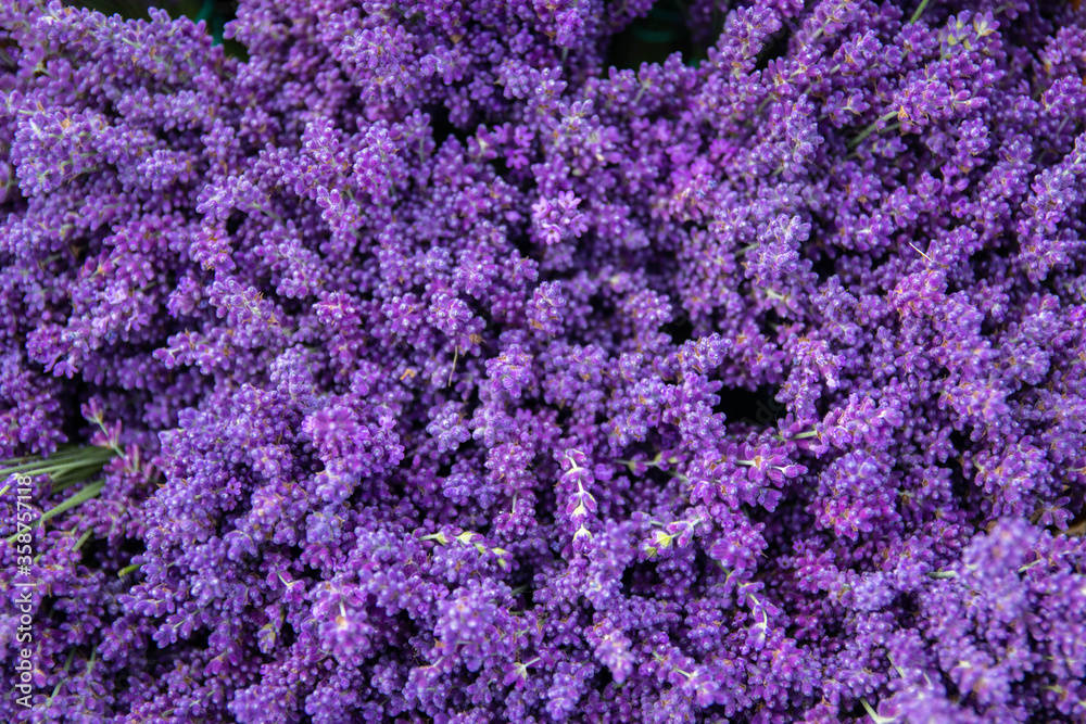 Top view over blooming Blue Purple lavender flowers field and meadow.