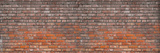 Background Of Old Vintage Brown and Red Brick Wall. Shabby Building Facade. Long Panoramic Banner.